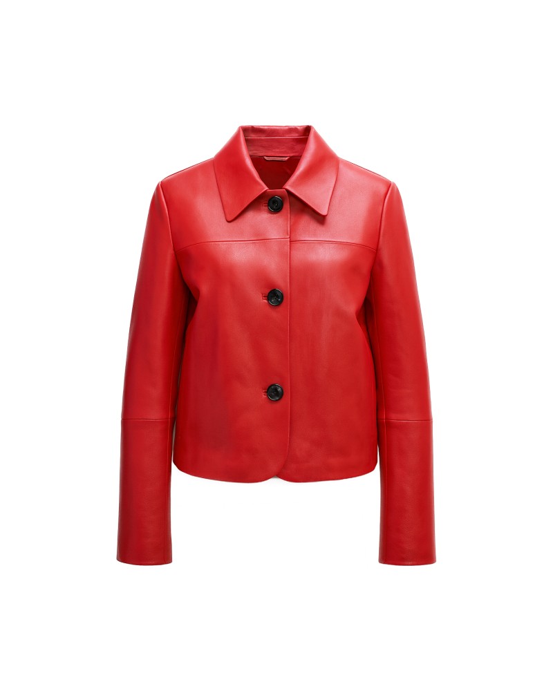 Geknöpfte Lederjacke mit klassischem Kragen BELLY