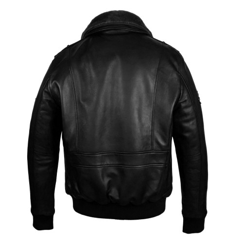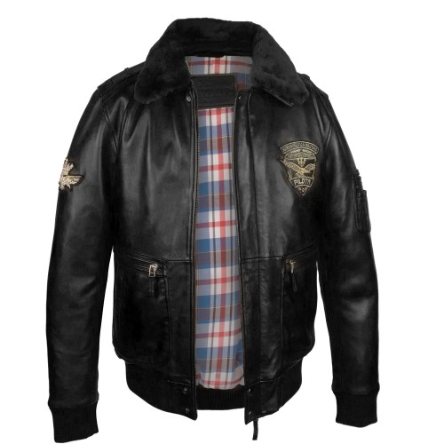 Lederjacke mit Patches im Fliegerstil mit abnehmbarem Kragen